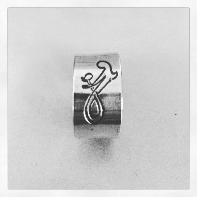 Anillo personalizado de plata con nombres o frases realizados a mano.