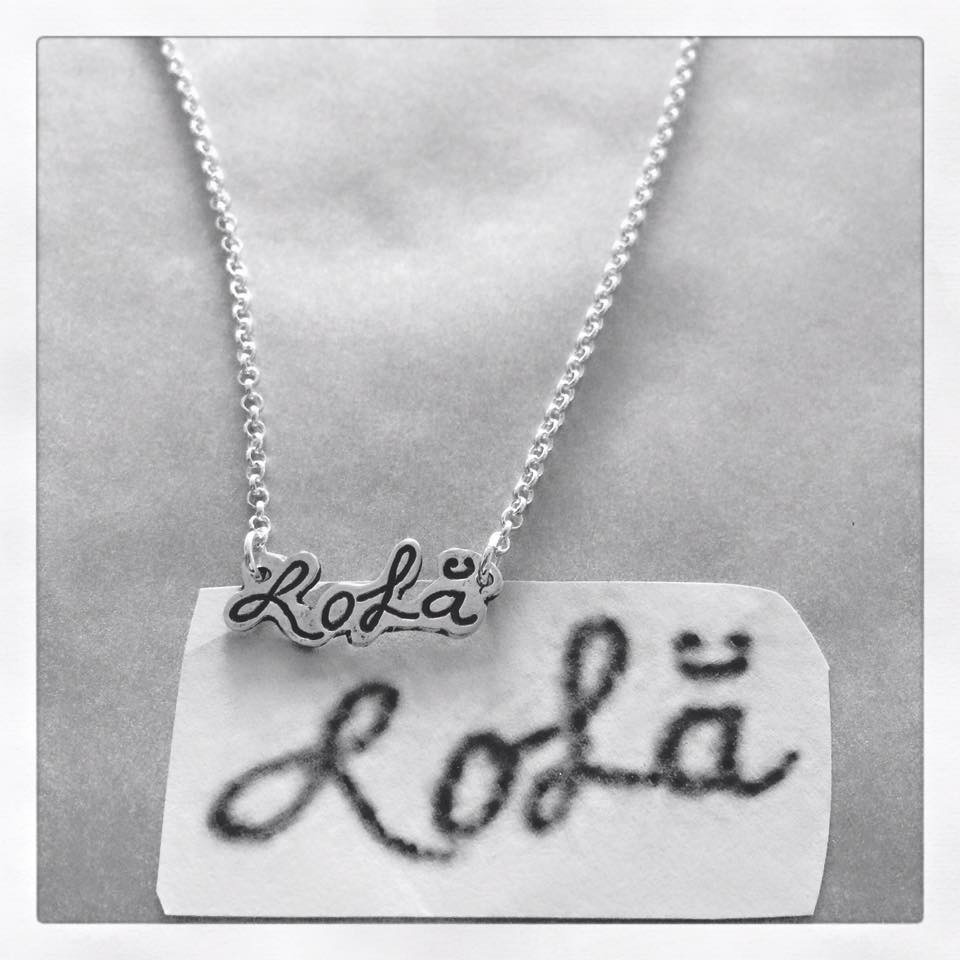 Collar de plata con nombre escrito con vuestra letra. Cadena rolo redonda.