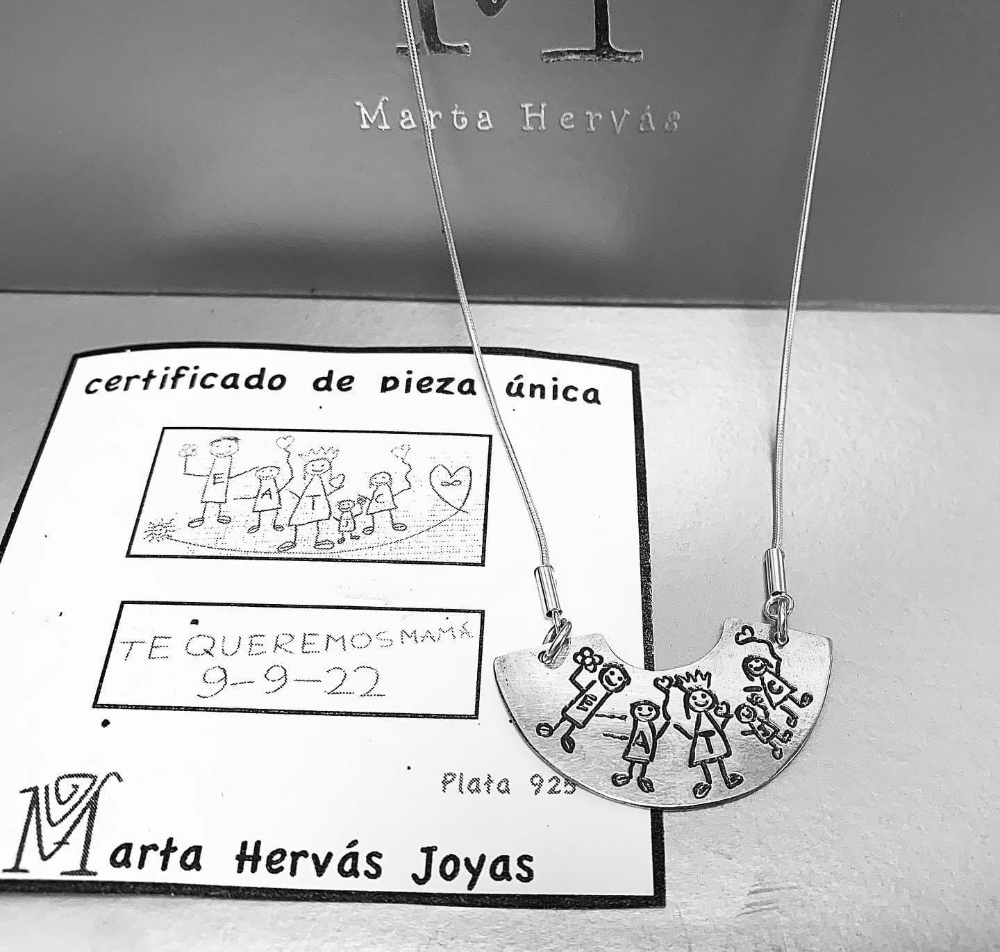 Collar personalizado con forma semicircular y cadena de plata. Se puede grabar con dibujos, frases, nombres… Detrás también se puede grabar una dedicatoria, fecha…